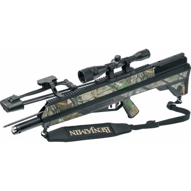 Benjamin Pioneer Airbow Package includes: Airbow, Benjamin bow sling, MTAG scope, air reservoir with pressure gauge and refilling adapter, three Airbow arrows, three 100-gr. field points and Realtree AP® decal kit.