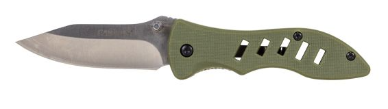 Field knife and sharpener combo featuring a 2.75" blade made of corrosion-resistant 420 stainless steel. Total length 6.5" with a green handle. Includes a compact Glide Sharpener for field use. Perfect for camping, hiking, and general utility.