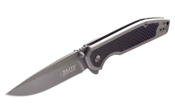 Elite Tactical Folding Drop Point Knife, Gray- ET-1007