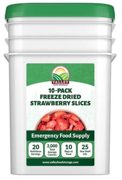 Valley Food Storage’s Freeze Dried Strawberry Slices are are packed with Vitamin C, and provide essential nutrients needed to keep your body going. Made simple ingredients our strawberries keep your family’s health and wellness at the forefront while protecting them with long term food storage for up to 25 years! Each pouch of freeze dried strawberry slices contains 2 servings.