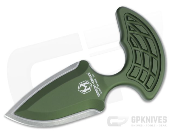 The Sleight from Heretic Knives is an innovative modular push dagger consisting of a milled aluminum handle and independent steel blade module. Durable, lightweight and weather resistant both handle and blade can be swapped with other components* from the Sleight line to meet specific needs. This version comes with a Battleworn CPM-20CV double edge blade and green handle.