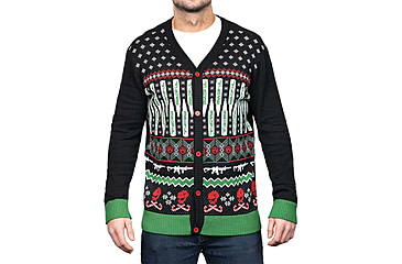 Ready for your next Christmas party, the Magpul-themed tacky Christmas sweater is back as a lightweight cardigan. Made from a cotton/acrylic mix, this sweater is extremely soft, lightweight, and guaranteed to keep you warm while allowing some extra adjustment for that Christmas ham.