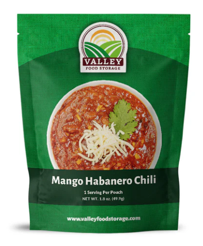Valley Food Storage Mango Habanero Chili features a sweet and savory entree that will bring the heat to your kitchen making it perfect for a quick and convenient lunch or dinner for the whole family. Each pouch of mango habanero chili contains 5 servings.