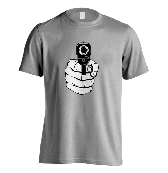 A humorous Second Amendment twist on "Smile, wait for flash" phrase commonly used when taking photos.