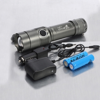 XM-L 2000LM 3 Modes White Light Adjustable Focus Zooming Aluminum Alloy LED Flashlight Grey