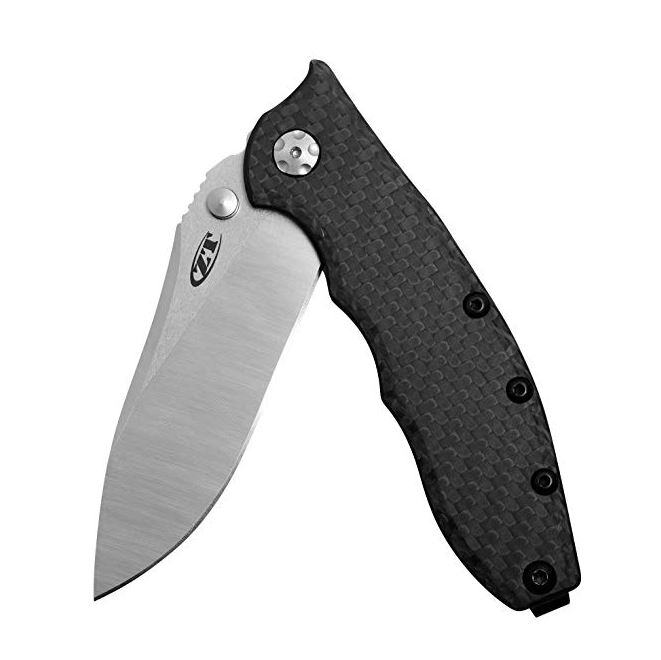 Zero Tolerance 0562CF Hinderer Slicer Folding Knife; 3.5” CPM-20CV Stonewashed and Satin Steel Blade, Carbon Fiber Front Handle, KVT Ball-Bearing Opening, Frame Lock and Reversible Pocketclip; 5.5 OZ